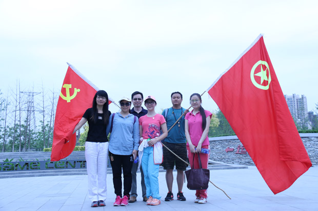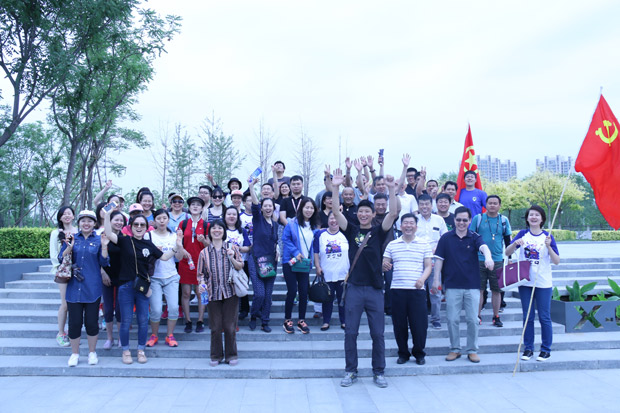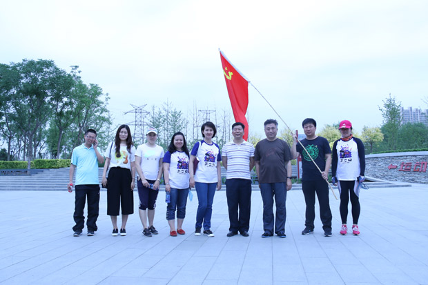 党旗、团旗迎风飘扬,60多名职工精神饱满、热情高涨奔向赛道。在5公里的行进路途中,大家甩开臂膀,迈开大步,你追我赶,呼吸着清新的空气,欣赏着美丽的景色,感受着健步走带来的快乐。途中每隔几百米都设有服务站,中心工会的各位委员们热情为大家指引路线并提供饮品,保障了健步走活动有序、顺利的进行。在健步走路线的终点,还安排有专门人员记录完成时间。每一位职工的冲线都引起阵阵掌声和笑声,气氛十分热烈。当最后一名职工冲线后,梁钢、邓贺鹰等中心领导饶有兴致的与各位干部职工交流、分享,并合影留念。