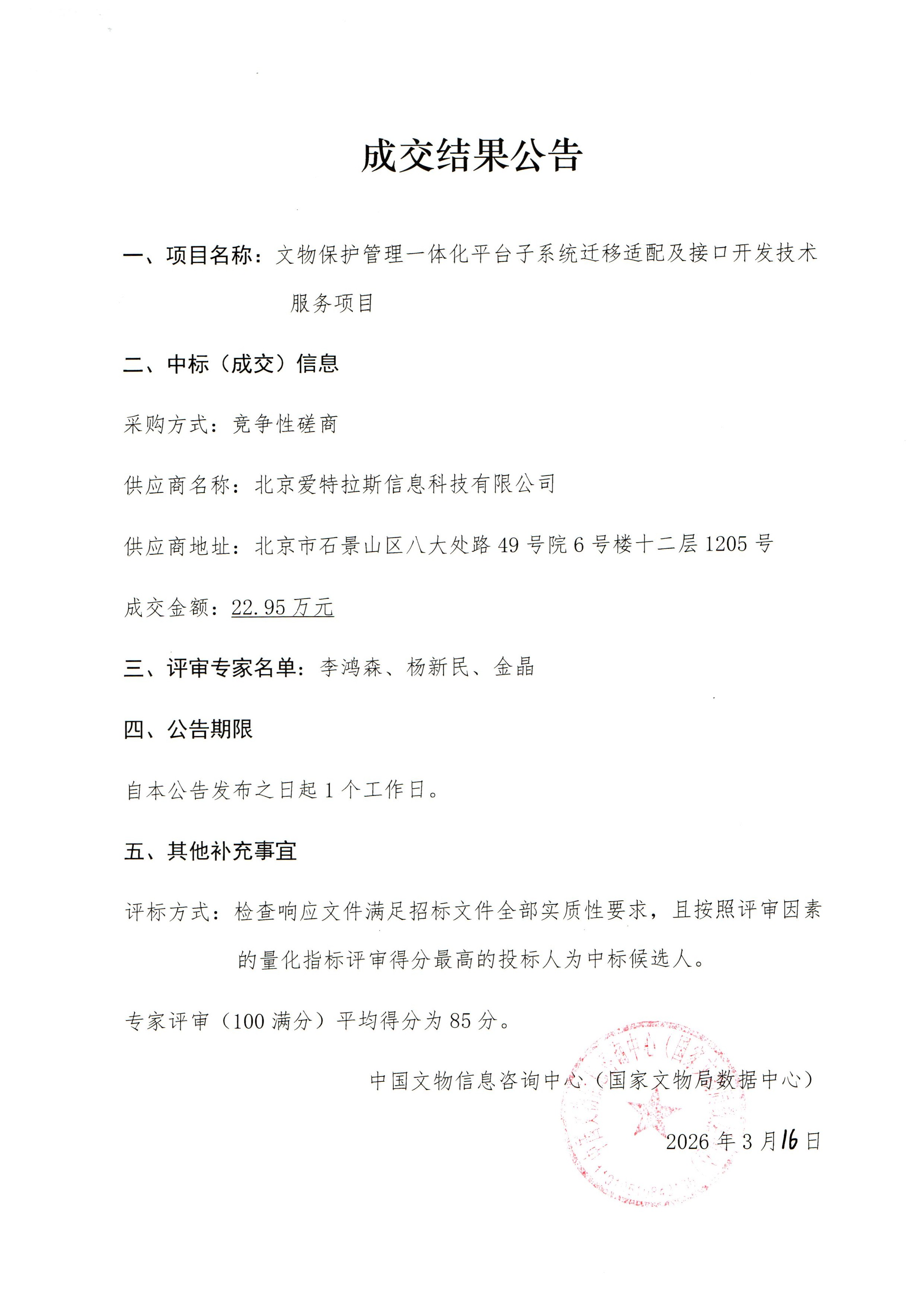 成交结果公告